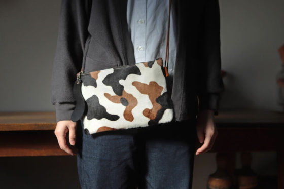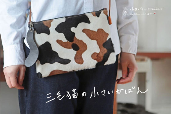 三⽑猫のオスは30000分の1の確率でしか⽣まれない。 猫好きのあなたへ贈る。 猫の毛並みを再現したレザーで作った三⽑猫柄の⼩さいかばんを発売します。