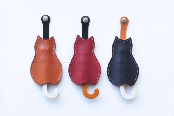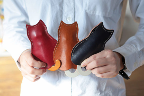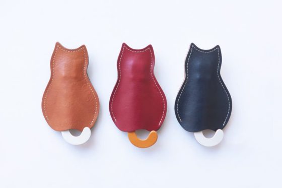 猫の魅⼒の⼀つである、流れるような曲線からインスピレーションをうけた「しっぽを引っ張る猫のキーケース」は、昔⼯房で飼っていたふとっちょ猫がモチーフとなっています。