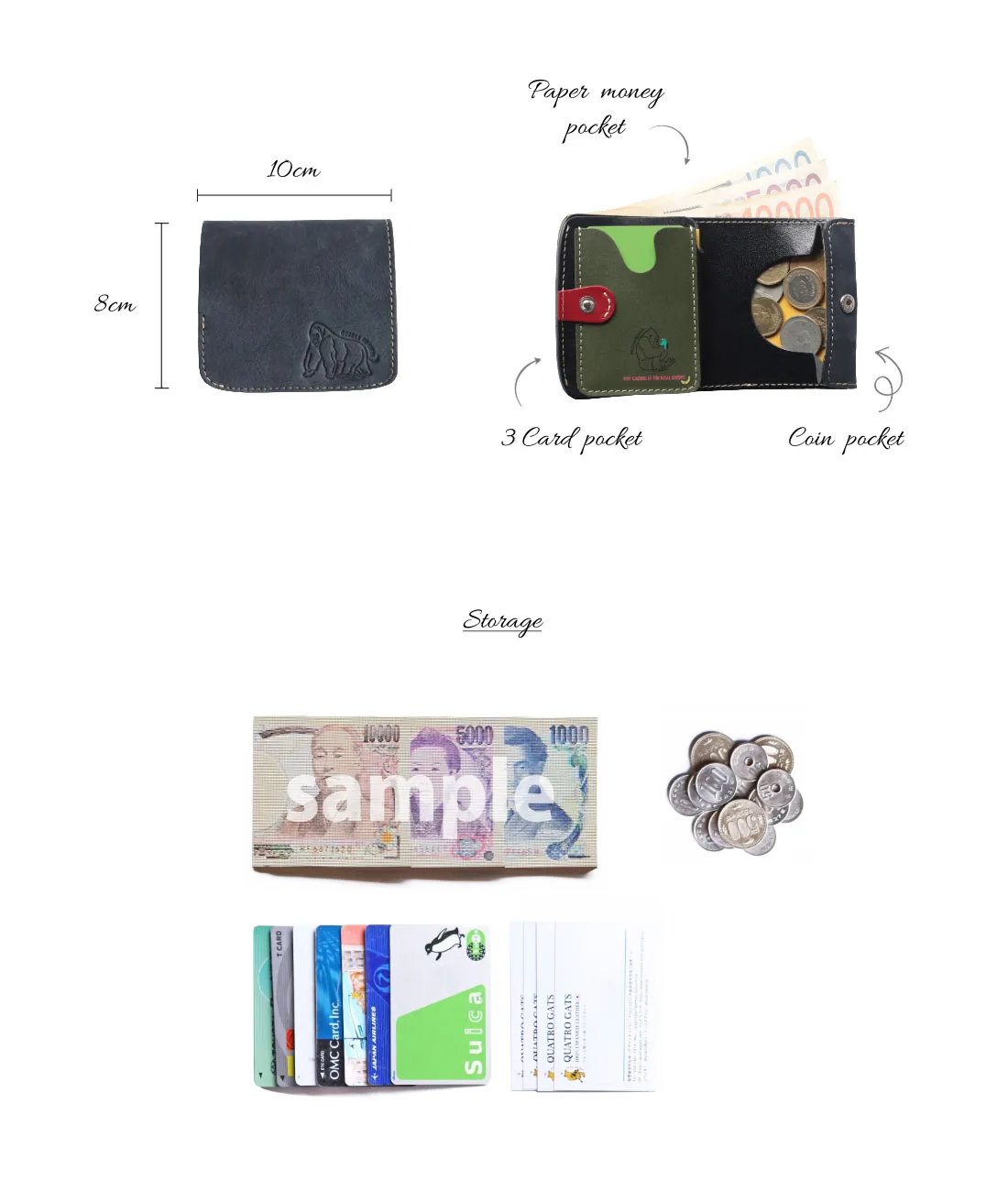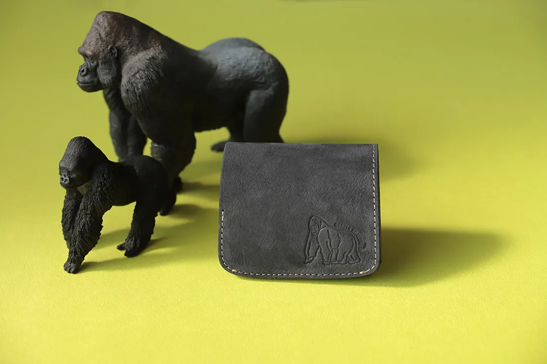 「小さいふ。ゴリラ」は、表革にイタリア・トスカーナのVOLPI社が手がけるヌバックレザーを採用。ゴリラの毛並みのようなマットで柔らかな質感が魅力です。
